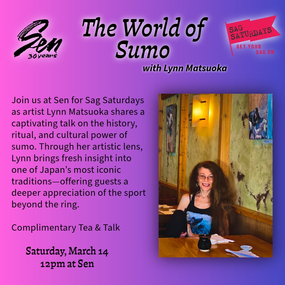 Join us at Sen for Sag Saturdays as artist Lynn Matsuoka shares a captivating talk on the history, ritual, and cultural power of sumo. Through her artistic lens, Lynn brings fresh insight into one of Japan’s most iconic traditions—offering guests a deeper appreciation of the sport beyond the ring.